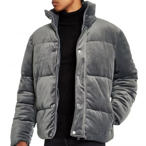 Tùy chỉnh người đàn ông của mùa đông nóc áo khoác với nhung đứng cổ vải vải