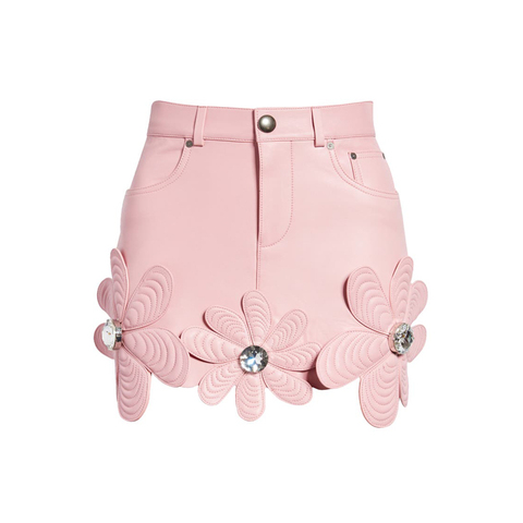Minifalda corta de piel acampanada de cintura alta vintage personalizada para mujer minifalda con adornos florales para mujer natural