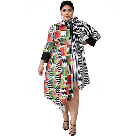 Сезон весна-осень; Женская обувь больших размеров с длинным рукавом платье повседневное свободное платье-рубашка в черно-белую полоску платья одежда в стиле «пэчворк»; Оптовая продажа