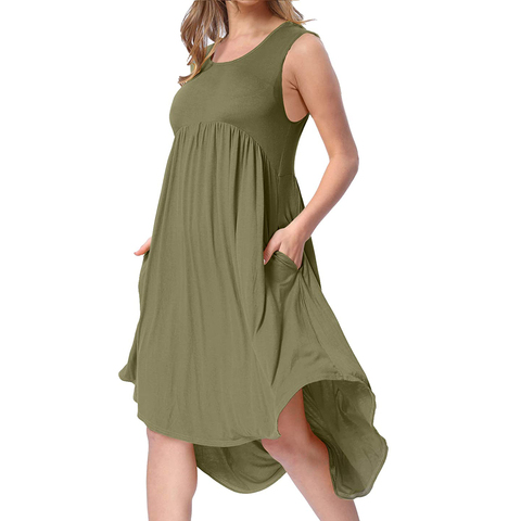 Женские Повседневные платья-майки без рукавов на заказ, летние платья-майки с круглым вырезом и пуговицами, эластичное мини-платье большого размера