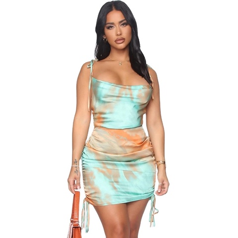 Женское сексуальное шелковое облегающее платье с боковым шнурком и открытой спиной, атласное мини-платье-комбинация для клуба