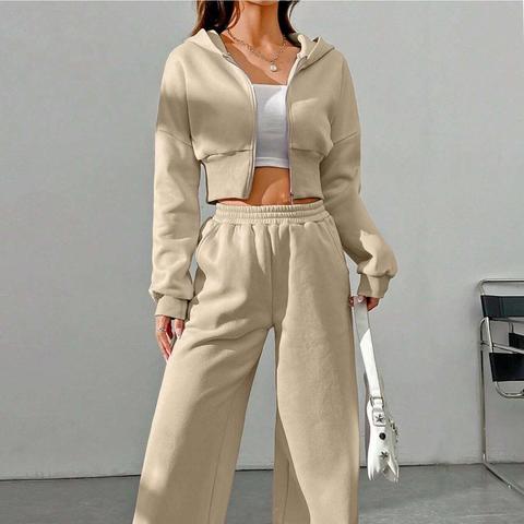 Мягкая трикотажная укороченная толстовка на молнии с низкой талией/брючный комплект из 2 предметов для женщин, комплект из леггинсов с длинным рукавом